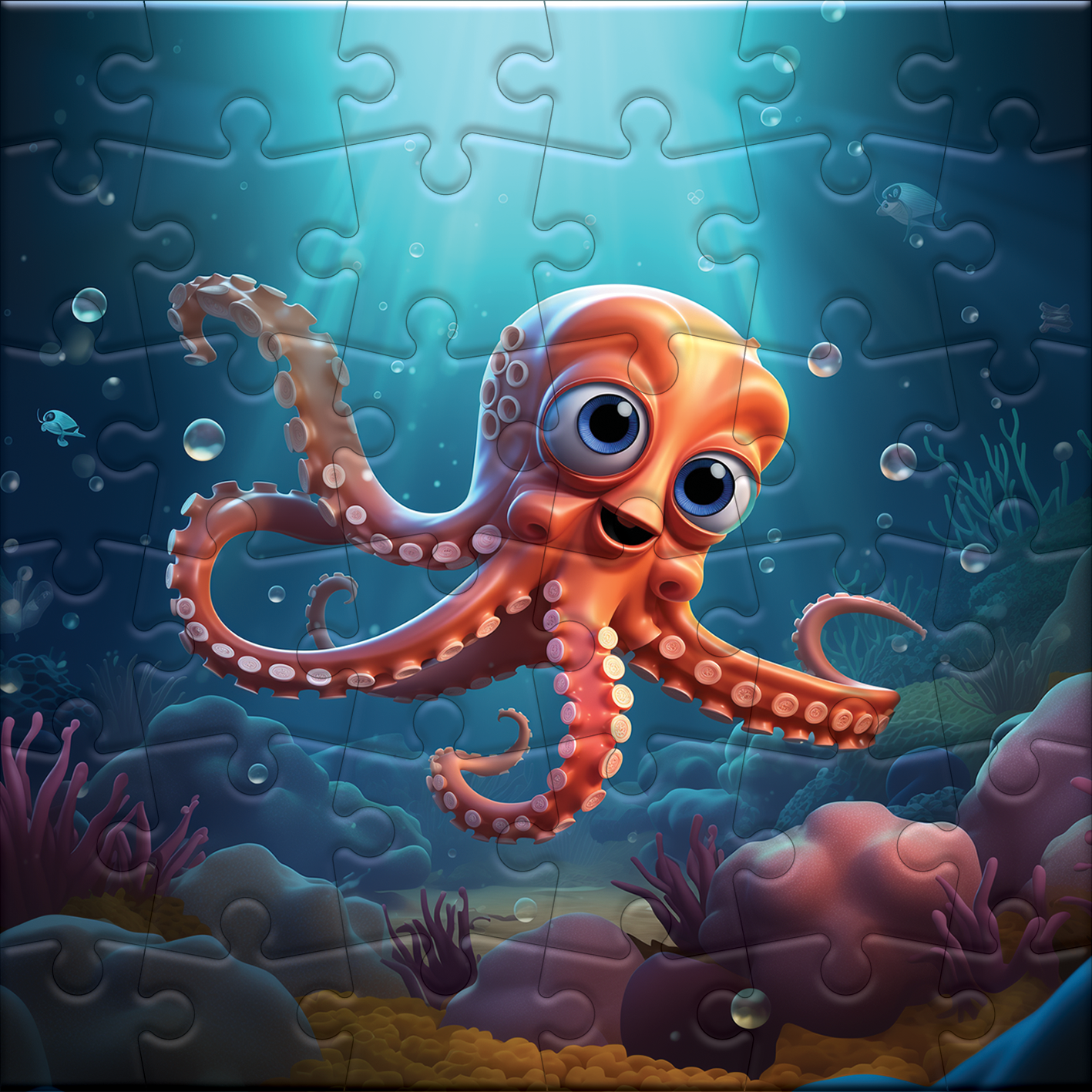 - Commencez par vous amuser avec la pieuvre aux grands yeux : assemblez ce charmant puzzle et profitez de la scène autonome.