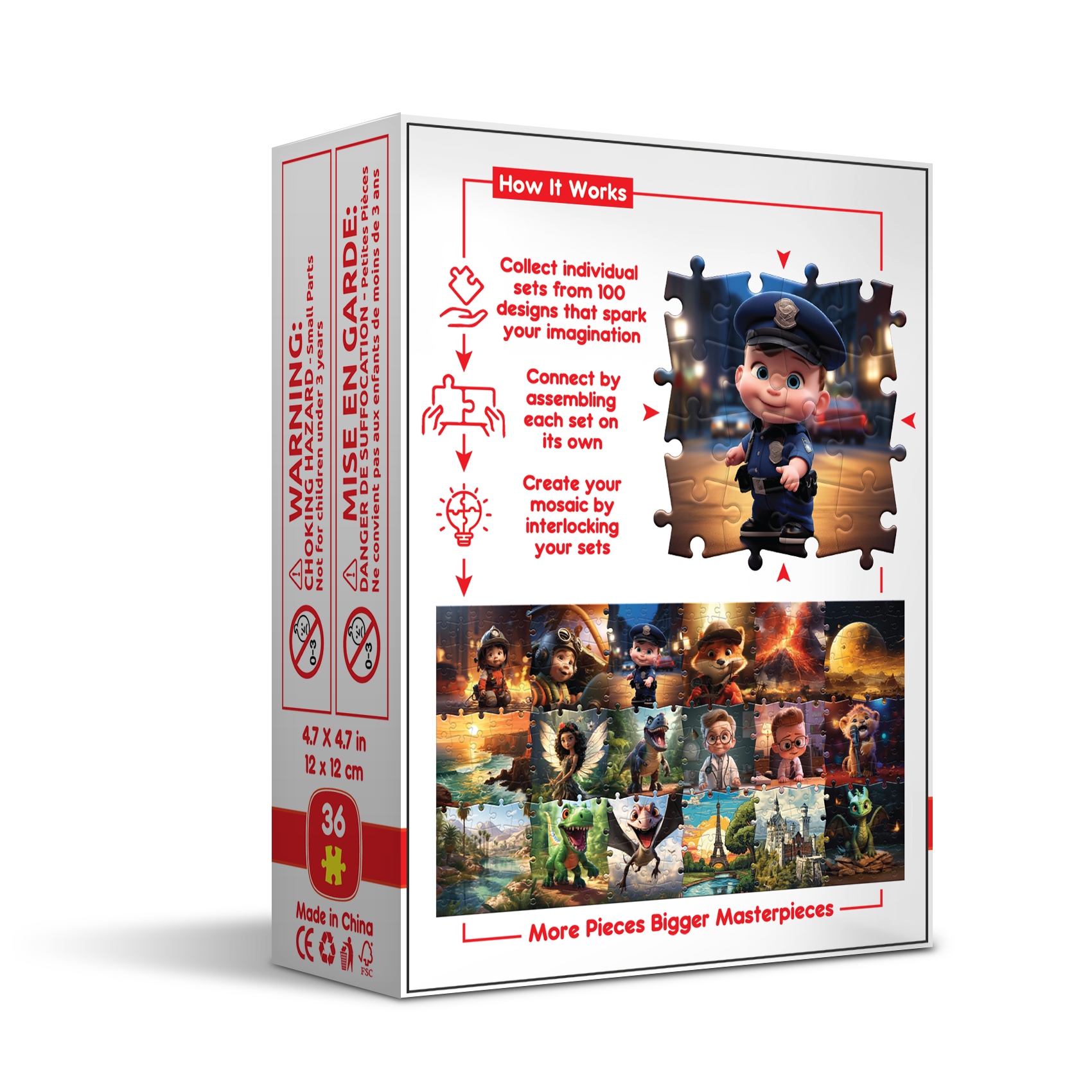 Embarquez pour un vaillant voyage au service des forces de l'ordre avec notre ensemble de puzzles Valiant Policeman Adventure , méticuleusement conçu pour inspirer les jeunes esprits à faire respecter la justice et à protéger leurs communautés. Assemblez ce captivant puzzle de 16 pièces pour rejoindre les aventures de notre courageux policier protagoniste tout en vous plongeant dans la noble profession de policier. Avec chaque élément que vous connectez, plongez plus profondément dans les devoirs et responsabilités des forces de l’ordre, en favorisant le sentiment du devoir et l’engagement au service des autres. Rejoignez-nous pour inspirer la prochaine génération de gardiens avec notre puzzle policier stimulant !